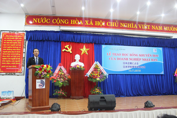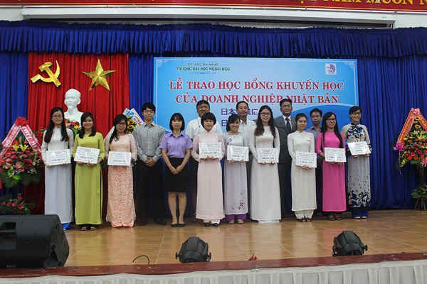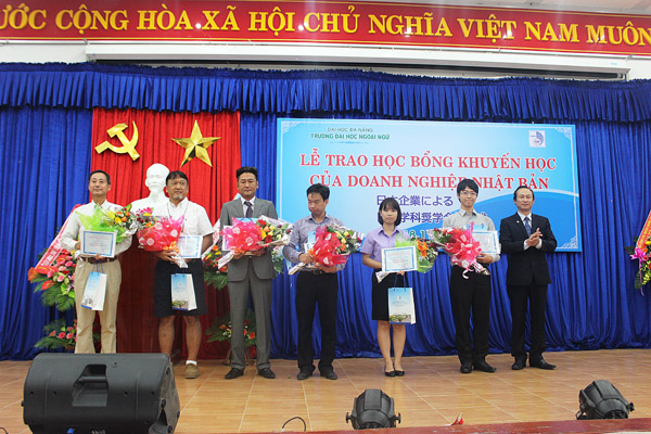 “Lễ trao học bổng là cơ hội thúc đẩy hơn nữa mối quan hệ chặt chẽ giữa doanh nghiệp và sinh viên Nhà trường. Không chỉ dừng lại ở việc học Ngôn ngữ Nhật, qua những lần tiếp xúc với các doanh nghiệp, sinh viên ngành Tiếng Nhật – Trường Đại học Ngoại ngữ, ĐHĐN tích lũy được thêm nhiều kinh nghiệm thực tế cùng những hiểu biết về văn hóa doanh nghiệp, hỗ trợ tốt cho sinh viên sau khi ra trường.”- TS. Ngô Quang Vinh, Trưởng Khoa tiếng Nhật – Hàn – Thái phát biểu thêm.