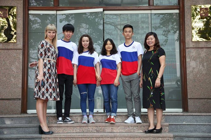 Sinh viên Trường Đại học Ngoại ngữ – Đại học Đà Nẵng chụp hình lưu niệm tại Cuộc thi Olympic tiếng Nga 2018