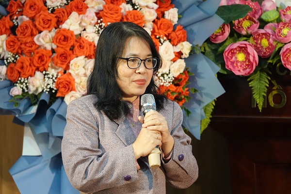 TS. Trần Thị Lan Anh – Trưởng khoa Khoa Ngôn ngữ và Văn hóa Hàn Quốc, Trường Đại học Ngoại ngữ, ĐHĐN báo cáo kết quả đào tạo tại buổi Lễ