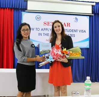 Bà Rosemary Higgins – Phó lãnh sự đang giới thiệu về quy trình xin thị thực du học Hoa Kỳ.