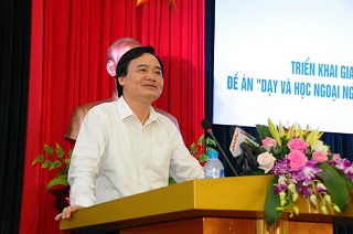“Lộ trình bước đi như thế nào phải tính toán, trong điều kiện hiện nay chúng ta chỉ nhìn đến năm 2025, trước mắt là 2020 cho tốt. Từ đó nhân lên và cuối cùng được mục tiêu để phấn đấu. Tôi muốn làm sao chúng ta tạo được một xu thế toàn xã hội học tiếng Anh như một nhu cầu tự thân.” – Bộ trưởng nhấn mạnh.