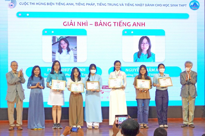 Giải Nhì bảng tiếng Anh thuộc về các em Phan Như Quỳnh – Trường THPT Phan Châu Trinh và Nguyễn Trâm Anh – Trường TH, THCS, THPT Sky-line; bảng tiếng Nhật thuộc về các em Nguyễn Ngọc Thanh Ngân – Trường THPT Chuyên Lê Quý Đôn và Nguyễn Thị Hải Yến – Trường THPT Nguyễn Trãi; bảng tiếng Trung thuộc về em Phạm Bảo Trân – Trường THPT Phan Châu Trinh; bảng tiếng Pháp thuộc về em Võ Lê Phương Khanh – Trường THPT Chuyên Lê Quý Đôn.