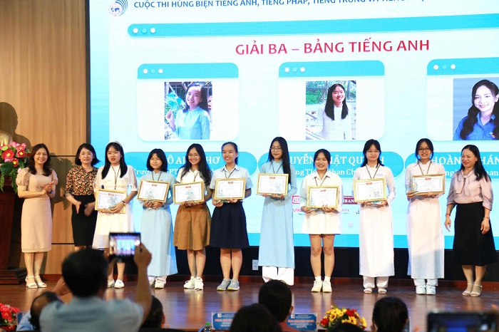 Giải Ba bảng tiếng Anh thuộc về các em Ngô Anh Thơ – Trường THPT Chuyên Lê Quý Đôn, Nguyễn Nhật Quỳnh và Lê Hoàng Khánh Trang – Trường THPT Phan Châu Trinh; bảng tiếng Nhật thuộc về các em Đoàn Minh Tâm – Trường THPT Chuyên Lê Quý Đôn, Vũ Minh Huyền – Trường THPT Hoàng Hoa Thám, Đoàn Thị Diệu Hoà – Trường THPT Phan Châu Trinh; bảng tiếng Trung thuộc về em Phạm Hiền Phương – Trường THPT Hòa Vang; bảng tiếng Pháp thuộc về em Nguyễn Lê Kim Ngân – Trường THPT Chuyên Lê Quý Đôn.