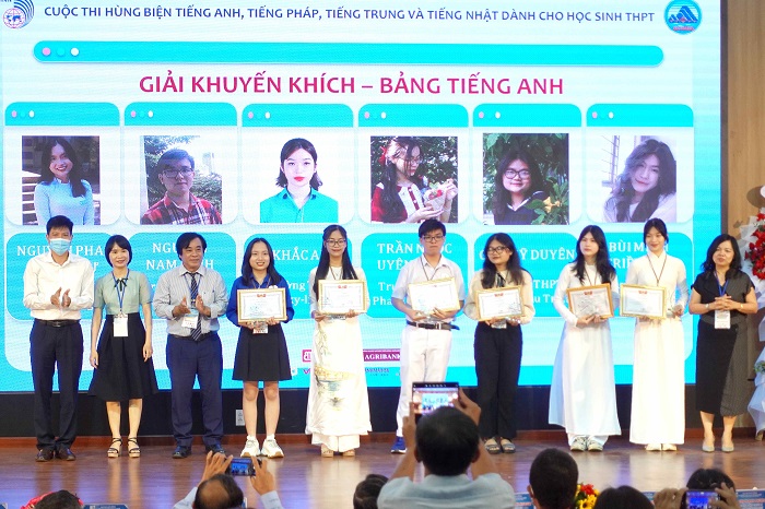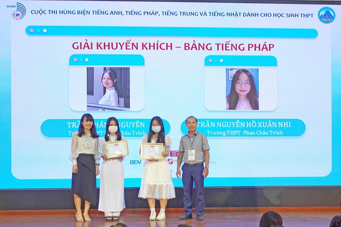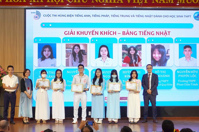 Giải Khuyến khích bảng tiếng Anh thuộc về các em Nguyễn Phan Hoài Thư  – Trường THPT Hòa Vang, Nguyễn Nam Bình, Trần Ngọc Uyên Thảo và Cao Mỹ Duyên – Trường THPT Phan Châu Trinh, Lê Khắc Anna và Bùi Minh Triều Anh – Trường THPT Sky-line; bảng tiếng Nhật thuộc về các em Nguyễn Phan Hoài Thư – Trường THPT Hòa Vang, Trần Thị Minh Ánh và Nguyễn Hữu Phước Lộc – Trường THPT Phan Châu Trinh, Nguyễn Vũ Vi An và Hồ Thị Kim Khánh -Trường THPT Chuyên Lê Quý Đôn, Mai Phương Bảo Ngọc và Huỳnh Thị Kim Anh – Trường THPT Hoàng Hoa Thám; bảng tiếng Pháp thuộc về các em Trần Khánh Nguyên và Trần Nguyễn Hồ Xuân Nhi – Trường THPT Phan Châu Trinh.