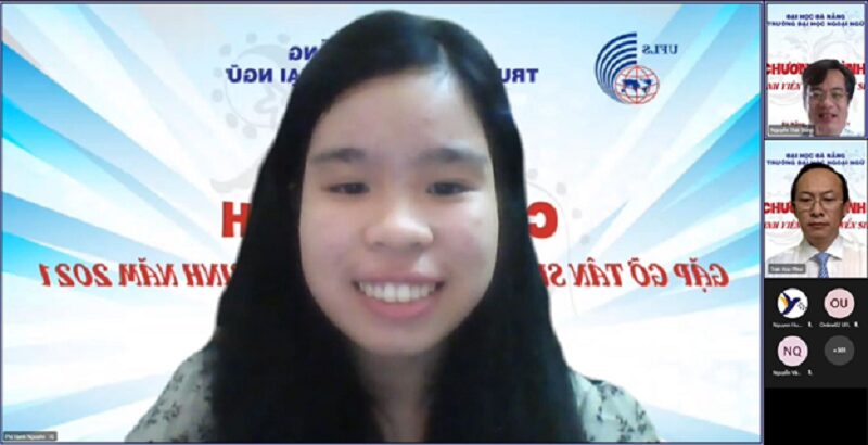 Phát biểu giao lưu tại Chương trình, bạn Phí Hạnh Nguyên, một trong số những thí sinh xuất sắc vừa được xét tuyển thẳng vào ngành Sư phạm Tiếng Anh của Trường, bày tỏ lòng tự hào và sự vui mừng khi đã hoàn thành ước mơ trở thành sinh viên của Trường Đại học Ngoại ngữ – ĐHĐN.