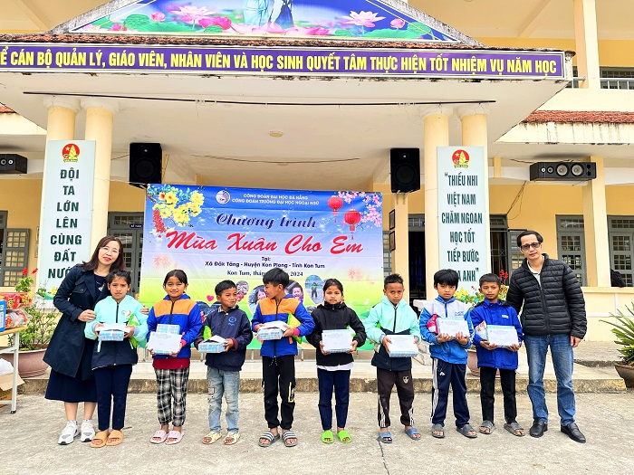 Kinh phí thực hiện Chương trình “Mùa xuân cho em 2024” được trích từ nguồn quỹ hoạt động xã hội từ thiện của Công đoàn do toàn thể các thầy cô giáo, viên chức, người lao động Trường Đại học Ngoại Ngữ, ĐHĐN chung tay đóng góp. Tổng cộng có 60 suất quà tặng (bao gồm tiền mặt 500.000 đ/suất và đồ dụng học tập là các ram vở viết, bút mực, bánh kẹo, sữa tươi) với tổng trị giá 50 triệu đồng, dành cho các em học sinh có hoàn cảnh khó khăn đang học tập tại trường Tiểu học &Trung học Cơ sở Đăk Tăng, huyện Kon Plong, tỉnh Kon Tum. Món quà tuy nhỏ về vật chất nhưng là tấm lòng của tất cả các thầy cô giáo, viên chức, người lao động Trường Đại học Ngoại ngữ, ĐHĐN gửi tới các em học sinh. Hy vọng những món quà nhỏ này sẽ mang đến ngọn lửa ấm áp, thắp lên niềm tin, hy vọng vào tương lai tươi đẹp cho các em học sinh vùng sâu, vùng xa.