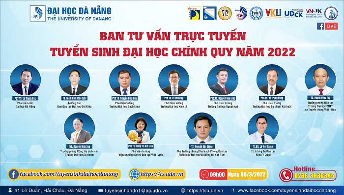 Trang chủ / Tin tức / Chương trình Tư vấn trực tuyến tuyển sinh Đại học Đà Nẵng năm 2022: Tiếp tục ổn định các phương thức xét tuyển, thêm nhiều cơ hội trúng tuyển đem lại sự yên tâm cho các thí sinh và phụ huynh