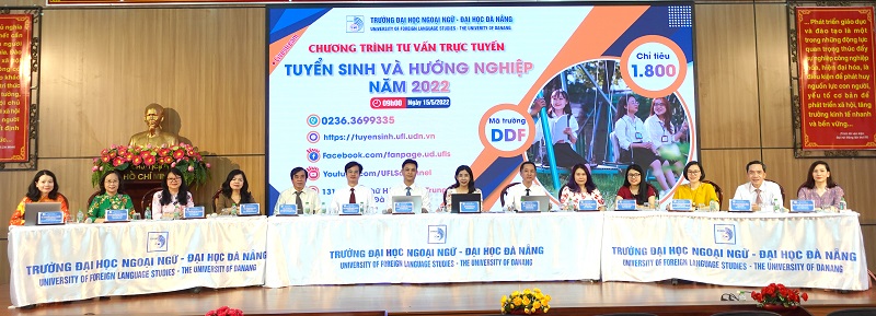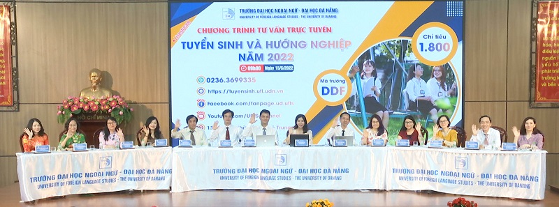 PGS.TS. Trần Hữu Phúc – Hiệu trưởng Nhà trường đã ghi nhận, biểu dương các đơn vị đã phối hợp tổ chức thành công Chương trình tư vấn trực tuyến livestream “Tuyển sinh và hướng nghiệp” năm 2022. PGS.TS. Nguyễn Văn Long – Phó Hiệu trưởng cùng lãnh đạo 9 Khoa, 1 Tổ Nhà trường đã giới thiệu, giải thích chu đáo, cặn kẽ những thông tin cơ bản, cần thiết đối với các thí sinh. Năm 2022, Trường Đại học Ngoại ngữ – Đại học Đà Nẵng thực hiện công tác tuyển sinh trong cả nước và nước ngoài với 1.800 chỉ tiêu cho 30 ngành đào tạo trong đó có 8 chương trình Chất lượng cao gồm Ngôn ngữ Anh (Tiếng Anh, Tiếng Anh Thương mại, Tiếng Anh Du lịch), Ngôn ngữ Trung (Tiếng Trung), ngôn ngữ Nhật, ngôn ngữ Hàn Quốc, Quốc tế học, Đông phương học với 5 phương thức xét tuyển, gồm: