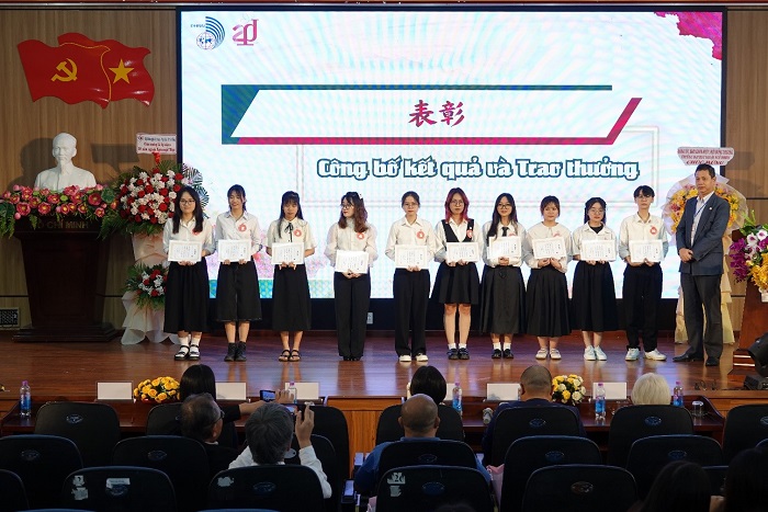 Các thí sinh nhận giấy chứng nhận tham gia cuộc thi hùng biện tiếng Nhật năm 2023