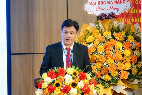 Đồng chí Nguyễn Ngọc Vũ – Thành ủy viên, Phó Bí thư Đảng ủy, Giám đốc Đại học Đà Nẵng phát biểu tại Đại hội