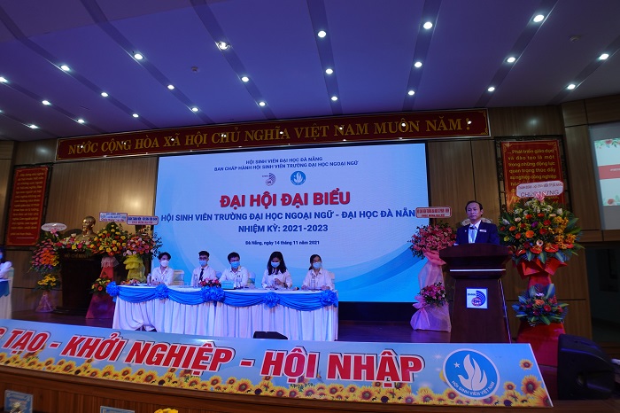 TS. Dương Minh Quân, Chủ tịch Hội Sinh viên Đại học Đà Nẵng ghi nhận và biểu dương các kết quả, thành tích mà Hội Sinh viên Trường Đại học Ngoại ngữ đã đạt được trong nhiệm kỳ 2021-2023. Hội Sinh viên Trường Đại học Ngoại ngữ trong nhiệm kỳ tới cần phát huy hiệu quả phong trào “Sinh viên 5 tốt” và chú trọng công tác tuyên truyền, giới thiệu về tổ chức Hội Sinh viên đến đông đảo sinh viên dưới nhiều hình thức đa dạng và phong phú. Công tác phát triển Hội Sinh viên cần song hành với sinh viên trong đời sống, học tập, nghiên cứu khoa học và khởi nghiệp. Ban Thư ký Hội Sinh viên Đại học Đà Nẵng tin tưởng Hội Sinh viên Trường Đại học Ngoại ngữ sẽ gặt hái được nhiều hơn những thành công, trở thành tổ chức Hội Sinh viên vững mạnh của Đại học Đà Nẵng. Ngoài ra, để ghi nhận những thành tích, nỗ lực không ngừng của sinh viên Trường Đại học Ngoại ngữ, nhân dịp này, Hiệu trưởng Nhà trường và Ban Chấp hành Đoàn trường cũng đã tặng Giấy khen cho 32 sinh viên có đóng góp tích cực cho công tác Hội và phong trào sinh viên Trường Đại học Ngoại ngữ giai đoạn 2018-2021.