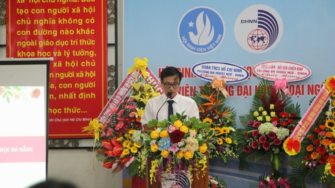 TS. Dương Minh Quân, Chủ tịch Hội Sinh viên Đại học Đà Nẵng ghi nhận và biểu dương các kết quả, thành tích mà Hội Sinh viên Trường Đại học Ngoại ngữ đã đạt được trong nhiệm kỳ 2016-2018. Hội Sinh viên Trường Đại học Ngoại ngữ trong nhiệm kỳ tới cần phát huy hiệu quả phong trào “Sinh viên 5 tốt” và chú trọng công tác tuyên truyền, giới thiệu về tổ chức Hội Sinh viên đến đông đảo sinh viên dưới nhiều hình thức đa dạng và phong phú. Công tác phát triển Hội Sinh viên cần song hành với sinh viên trong đời sống, học tập, nghiên cứu khoa học và khởi nghiệp. Ban Thư kí Hội Sinh viên Đại học Đà Nẵng tin tưởng Hội Sinh viên Trường Đại học Ngoại ngữ sẽ gặt hái được nhiều hơn những thành công, trở thành tổ chức Hội Sinh viên vững mạnh của Đại học Đà Nẵng.