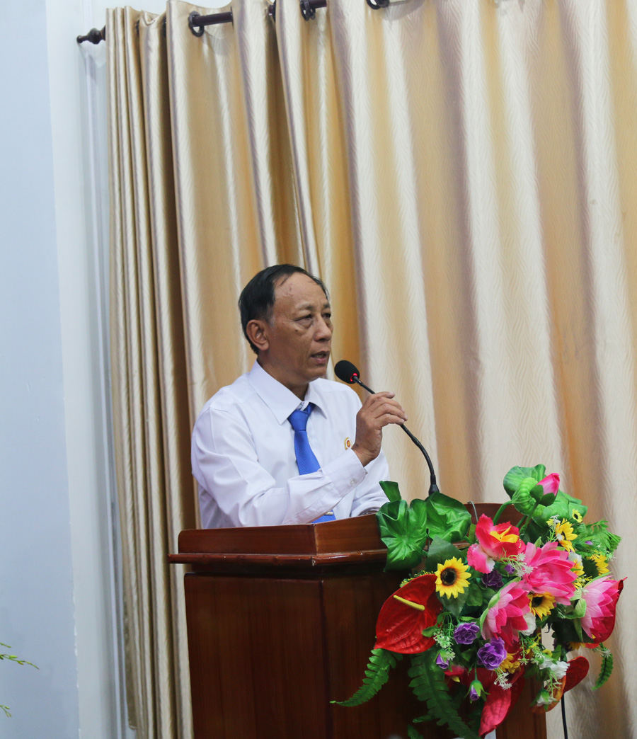 Đồng chí Võ Tiến – Chủ tịch Hội Cựu chiến binh Nhà trường trình bày báo cáo kiểm điểm Ban Chấp hành nhiệm kỳ 2012-2017.