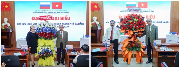 Đại diện lãnh đạo Liên hiệp các tổ chức hữu nghị thành phố Đà Nẵng và Tổng Lãnh sự Liên bang Nga tại Đà Nẵng tặng hoa chúc mừng Đại hội
