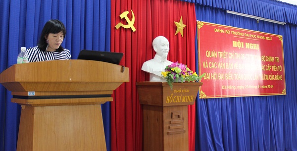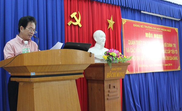 Tại Hội nghị, đồng chí Bí thư Đảng ủy đã phổ biến, quán triệt Chỉ thị số 36-CT/TW ngày 30/5/2014 của Bộ Chính trị về đại hội Đảng bộ các cấp tiến tới Đại hội Đại biểu toàn quốc lần thứ XII của Đảng, thông báo kế hoạch tổ chức Đại hội Chi bộ tiến tới Đại hội Đảng bộ Trường Đại học Ngoại ngữ lần thứ IV nhiệm kỳ 2015-2020, Đại hội Đảng bộ lần thứ V Đại học Đà Nẵng nhiệm kỳ 2015-2020 và hướng dẫn về công tác nhân sự đại hội đảng các cấp, triển khai hướng dẫn kiểm điểm tập thể, cá nhân và đánh giá phân loại chất lượng tổ chức Đảng, đảng viên năm 2014.