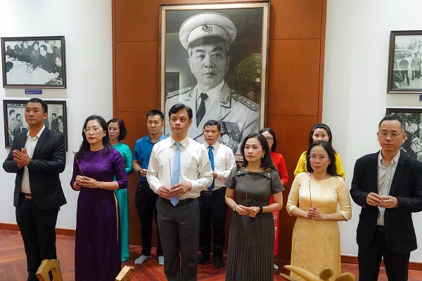 Trong không khí trang nghiêm, xúc động và đầy lòng thành kính, đoàn đại biểu Nhà trường đã kính cẩn dâng hương, dâng hoa trước chân dung Chủ tịch Hồ Chí Minh – vị lãnh tụ vĩ đại của dân tộc, anh hùng giải phóng dân tộc, danh nhân văn hóa thế giới, người sáng lập và rèn luyện Quân đội Nhân dân Việt Nam. Đồng thời, Đoàn cũng thành kính tưởng niệm Đại tướng Võ Nguyên Giáp – người học trò xuất sắc của Chủ tịch Hồ Chí Minh, Tổng Tư lệnh đầu tiên và là vị tướng huyền thoại của Quân đội Nhân dân Việt Nam.