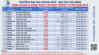 Trang chủ / Tin tức / ĐIỂM CHUẨN & DANH SÁCH THÍ SINH TRÚNG TUYỂN VÀO TRƯỜNG ĐẠI HỌC NGOẠI NGỮ – ĐHĐN NĂM 2018 (cập nhật giấy báo trúng tuyển)