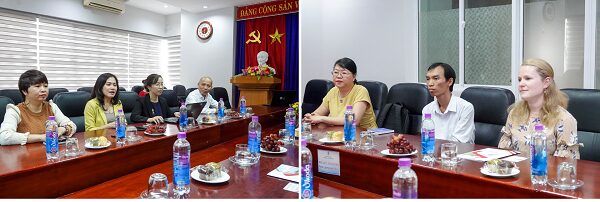 Cũng tại buổi gặp mặt, TS. Huỳnh Ngọc Mai Kha nhấn mạnh tiềm năng hợp tác song phương trong đào tạo các ngành ngôn ngữ du lịch tại Nhà trường. Ngoài chuyên ngành tiếng Pháp du lịch Trường Đại học Ngoại ngữ còn đào tạo các chuyên ngành tiếng Anh du lịch, tiếng Nga du lịch, tiếng Trung du lịch. TS. Huỳnh Ngọc Mai Kha chia sẻ: “Hy vọng sau buổi làm việc này, trường sẽ có thêm nhiều cơ hội trao đổi sinh viên và đoàn nghiên cứu, tạo điều kiện học tập cho cán bộ và giảng viên.” Ngoài ra, đại diện lãnh đạo Khoa Tiếng Pháp cũng chia sẻ sâu hơn về các chương trình đào tạo chuyên môn và các chương trình thực tập thực tế cho sinh viên