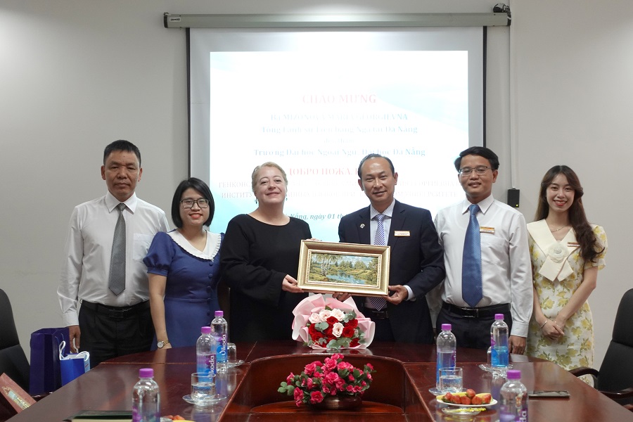 Tại buổi tiếp đón, PGS.TS. Trần Hữu Phúc bày tỏ sự vui mừng và chúc mừng bà Mizonova Maria Georgievna được bổ nhiệm Tổng Lãnh sự Liên bang Nga tại Đà Nẵng. Thầy Hiệu trưởng bày tỏ mong muốn trên cương vị mới, nhiệm kỳ mới, Bà tổng lãnh sự tiếp tục vai trò cầu nối, gắn kết mối quan hệ truyền thống của Tổng lãnh sự với Trường Đại học Ngoại ngữ – Đại học Đà Nẵng nói chung và Khoa tiếng Nga nói riêng. Thầy Hiệu trưởng hy vọng trong thời gian tới, mối quan hệ giữa hai bên tiếp tục gắn bó chặt chẽ hơn, phát triển thêm các hoạt động về giao lưu ngôn ngữ văn hóa và hỗ trợ Nhà trường trong công tác đào tạo, tạo diễn đàn để sinh viên giao lưu, học tập,…