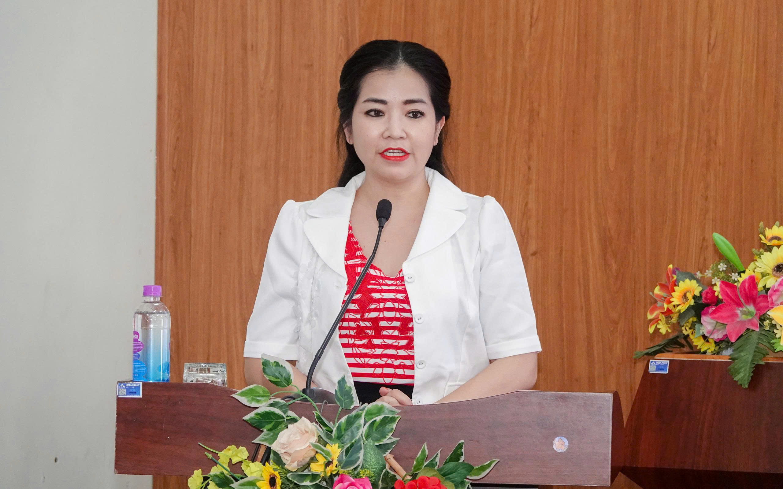 ThS. Trần Thị Ngọc Hoa, Phó Trưởng khoa Khoa Quốc tế học phát biểu tại buổi Lễ