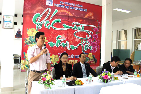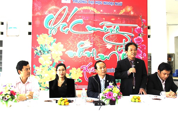 Trong không khí đầm ấm và phấn khởi, TS. Trần Hữu Phúc – Bí thư Đảng ủy, Hiệu trưởng Nhà trường đã gửi thông điệp đầu xuân cùng những lời chúc tốt đẹp nhất đến toàn thể cán bộ, giảng viên trong trường. TS. Trần Hữu Phúc đã biểu dương, đánh giá cao sự nỗ lực phấn đấu và những thành tích mà tập thể cán bộ, viên chức Trường Đại học Ngoại ngữ đạt được trong năm vừa qua. Bước sang năm mới 2015, TS. Trần Hữu Phúc mong rằng tập thể cán bộ viên chức Nhà trường phát huy những kết quả đạt được để hoàn thành xuất sắc nhiệm vụ đề ra trong năm 2015. Thầy Hiệu trưởng tin tưởng rằng với sự đoàn kết, nhất trí Nhà trường sẽ vượt qua những khó khăn và ngày càng phát triển.