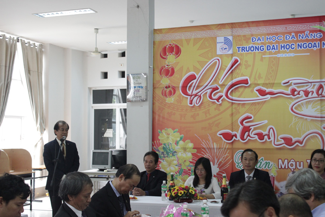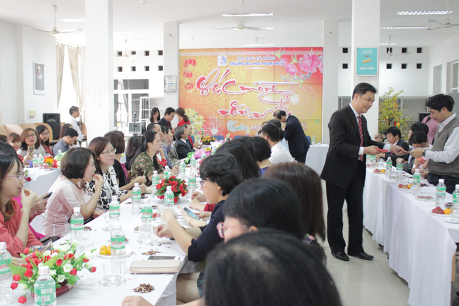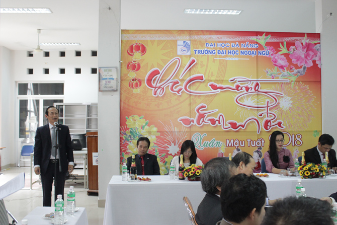 Trong không khí đầm ấm và phấn khởi, TS. Trần Hữu Phúc – Bí thư Đảng ủy, Hiệu trưởng Nhà trường đã gửi thông điệp đầu xuân cùng những lời chúc tốt đẹp nhất đến toàn thể cán bộ, giảng viên Nhà trường. TS. Trần Hữu Phúc đã biểu dương, đánh giá cao sự nỗ lực phấn đấu và những thành tích mà tập thể cán bộ, viên chức Trường Đại học Ngoại ngữ đạt được trong năm vừa qua. Bước sang năm mới 2018, TS. Trần Hữu Phúc mong rằng tập thể cán bộ viên chức Nhà trường phát huy những kết quả đạt được để hoàn thành xuất sắc nhiệm vụ đề ra trong năm 2018. Thầy Hiệu trưởng tin tưởng rằng với sự đoàn kết, nhất trí Nhà trường sẽ vượt qua những khó khăn và ngày càng phát triển.