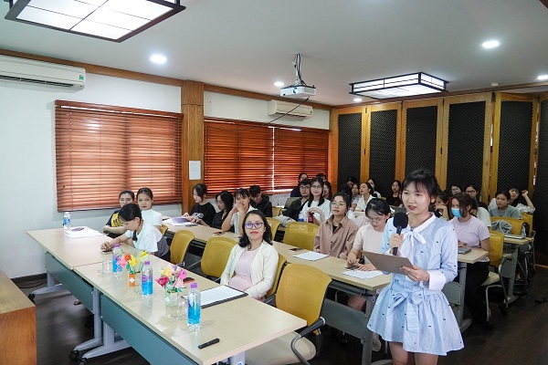 Đại diện sinh viên Trường Đại Học Ngoại Ngữ phát biểu tại buổi giao lưu.
