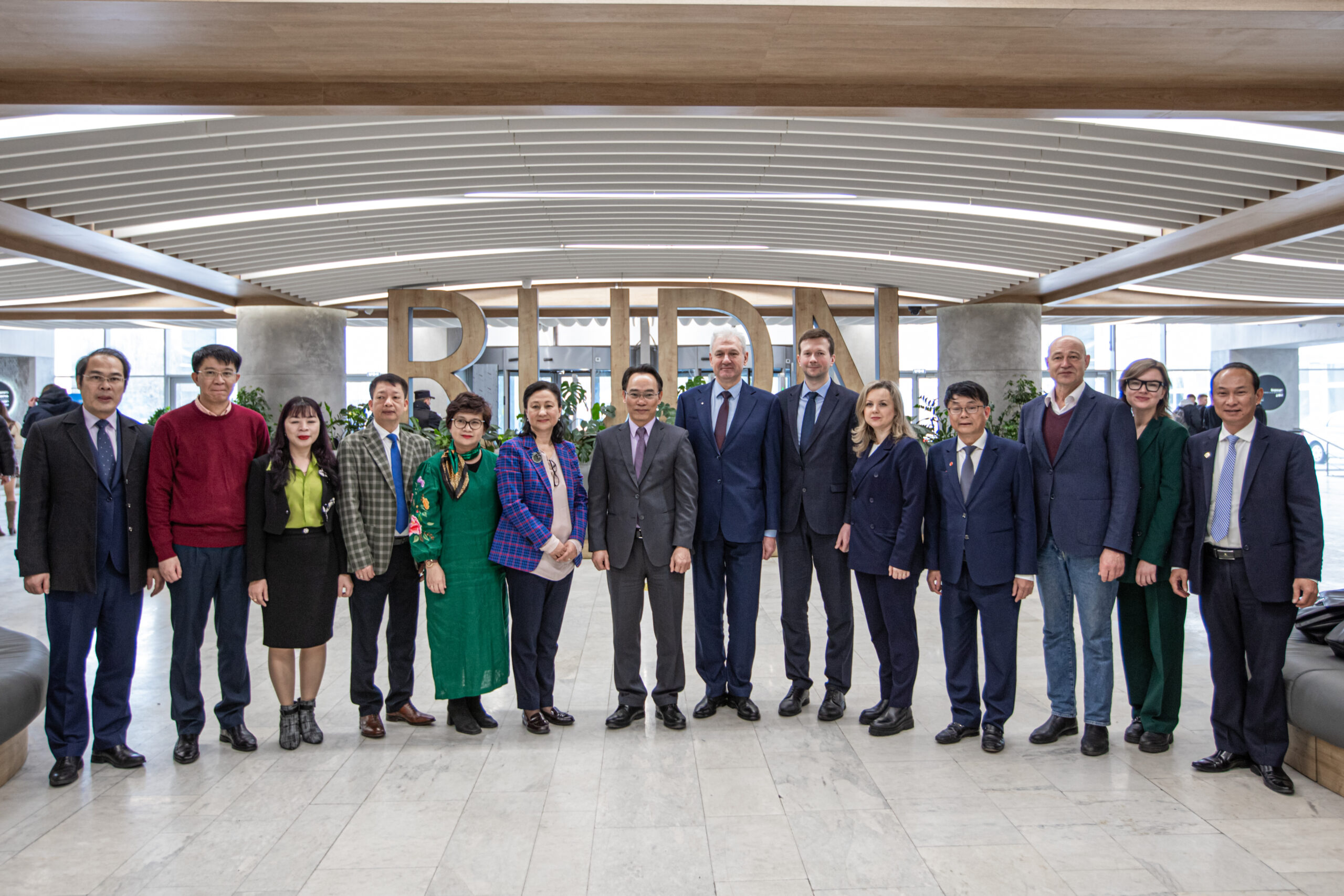 Đoàn công tác của Bộ GD&ĐT và Trường Đại học Ngoại ngữ, ĐHĐN chụp ảnh lưu niệm tại RUDN