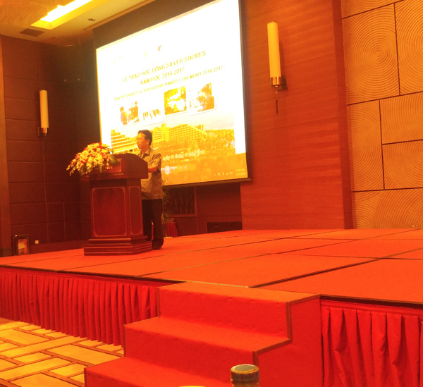 Chương trình trao học bổng đã được tổ chức tại Khách sạn Crowne Plaza Đà Nẵng, một đơn vị thành viên của Công ty TNHH Đầu tư và Phát triển Silver Shores và là một trong các khách sạn sang trọng bậc nhất trên địa bàn Thành phố Đà Nẵng. Ngay trước chương trình trao học bổng, đại diện lãnh đạo Nhà trường cùng các sinh viên đã được đại diện Khách sạn Crowne Plaza Đà Nẵng hướng dẫn tham quan Khách sạn. Đây là cơ hội để sinh viên của Nhà trường được tiếp xúc với một môi trường làm việc chuyên nghiệp đẳng cấp quốc tế nhằm hướng cho các em một chọn lựa nghề nghiệp tương lai đầy hấp dẫn.