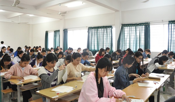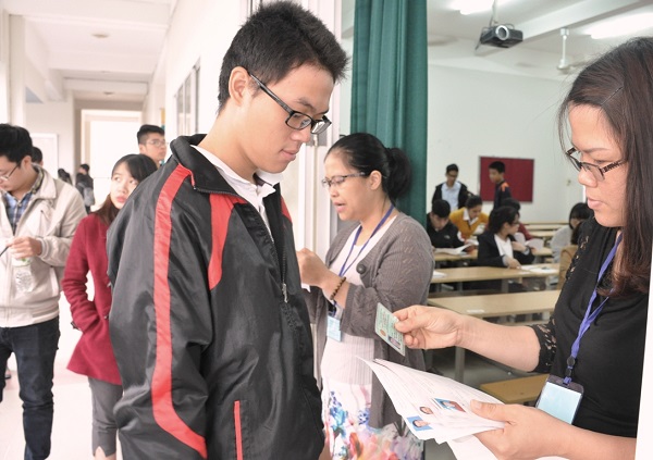 Đúng 9g sáng nay (4/12/2016), các thí sinh bắt đầu làm bài thi (ảnh chụp tại điểm thi ĐH Ngoại ngữ (ĐH Đà Nẵng)