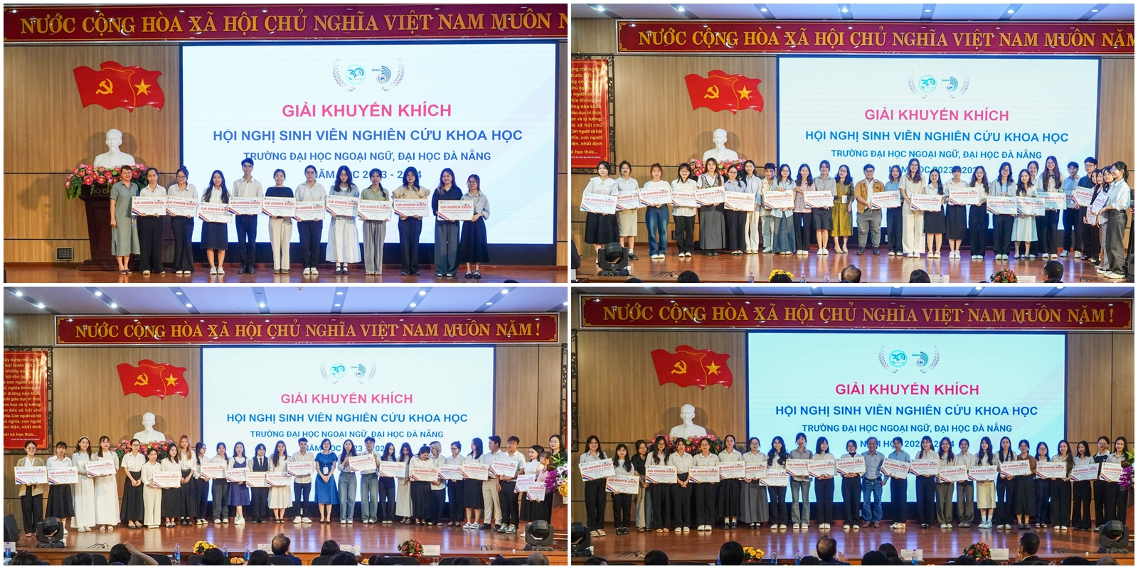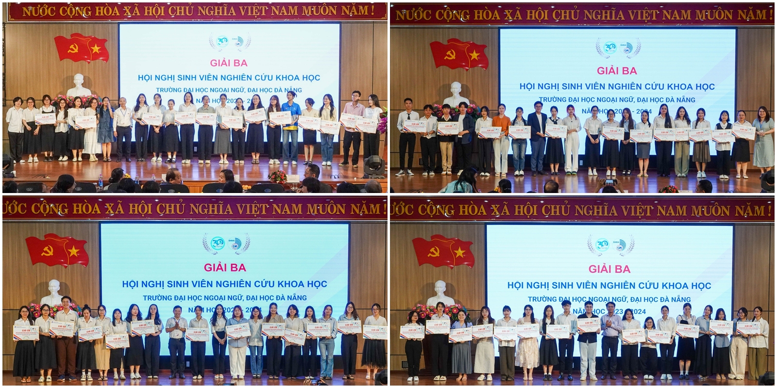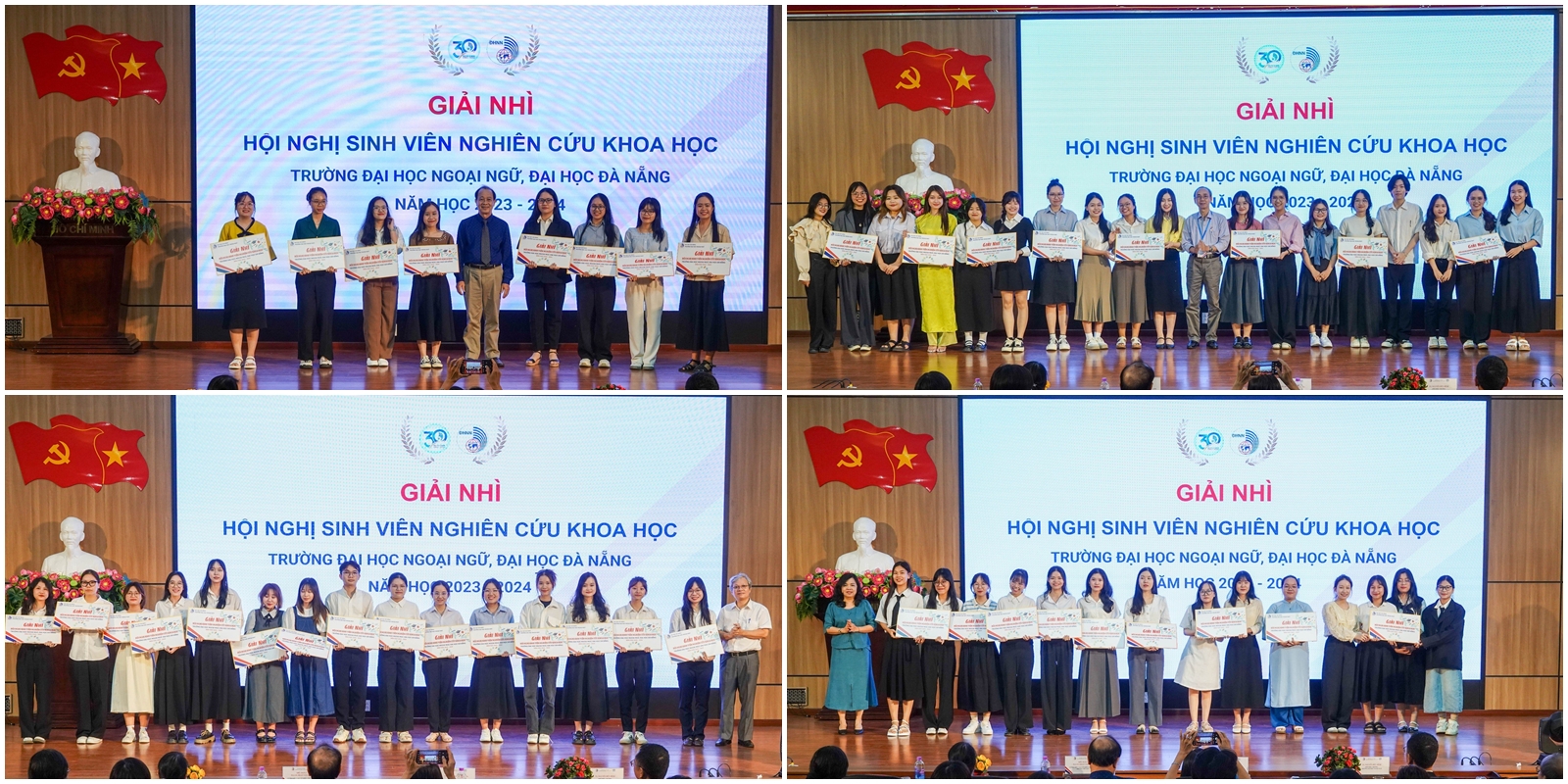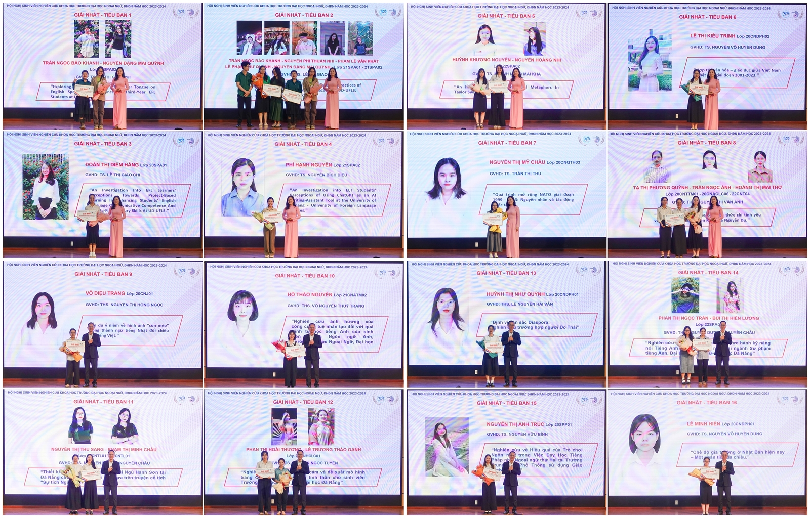 Ngay sau phiên Khai mạc, Hội nghị Sinh viên nghiên cứu khoa học Trường Đại học Ngoại ngữ, ĐHĐN năm học 2023-2024 đã chia các đề tài vào 16 tiểu ban thuộc các lĩnh vực khác nhau để các nhóm sinh viên trình bày, trao đổi ý tưởng và kết quả nghiên cứu với các Thầy, Cô trong Hội đồng đánh giá.