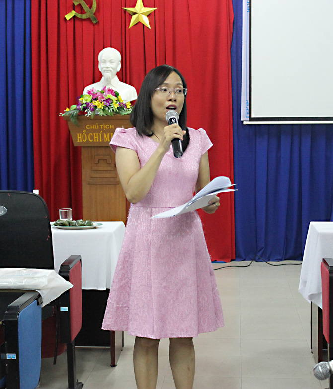 ThS. Phạm Thị Thu Hương – Chủ tịch Công đoàn Nhà trường tổng kết công tác công đoàn năm học 2015-2016 và phương hướng nhiệm vụ trọng tâm công tác năm 2017-2018.