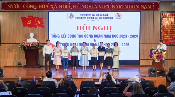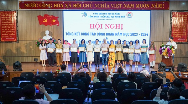 Tại Hội nghị, Công đoàn Trường Đại học Ngoại ngữ, ĐHĐN đã trao Giấy khen cho 16 Công đoàn bộ phận và 43 đoàn viên có thành tích xuất sắc trong hoạt động công đoàn năm học 2023-2024. Ngoài ra, Ban Chấp hành Công đoàn Trường cũng trao Giấy khen cho 17 cá nhân tiêu biểu trong phong trào thi đua “Giỏi việc Trường – Đảm việc nhà”.