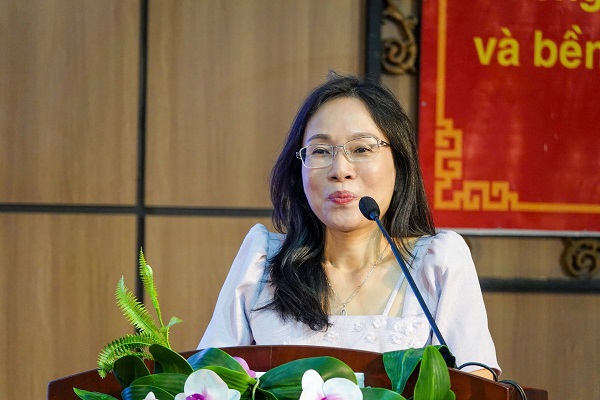 TS. Nguyễn Thị Thu Hương báo cáo tổng kết công tác Công đoàn năm học 2023 – 2024