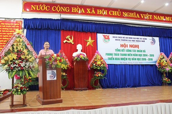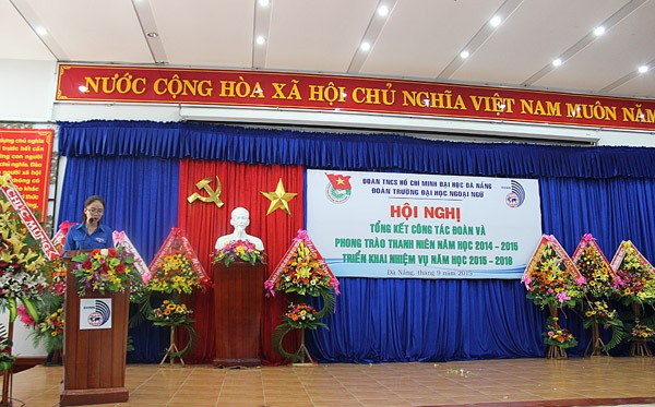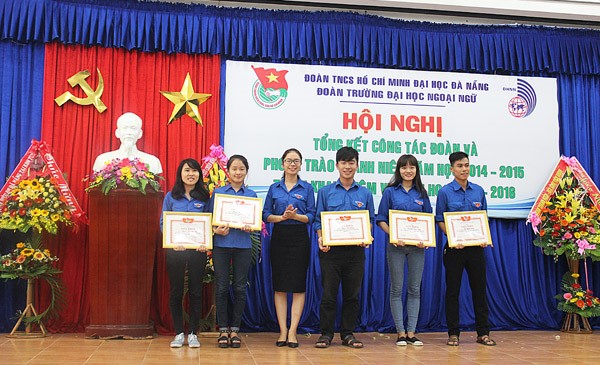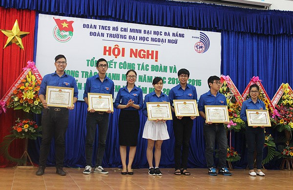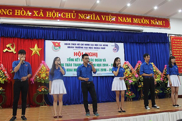 Trong năm học vừa qua, được sự chỉ đạo và quan tâm sâu sát của Thành Đoàn, Đảng Uỷ, Ban Giám Hiệu Nhà trường, tuổi trẻ trường Đại học Ngoại ngữ – Đại học Đà Nẵng đã đạt được nhiều thành tích đáng tự hào như: Công tác giáo dục chính trị tiếp tục được đẩy mạnh và nâng cao hiệu quả với nhiều hình thức đổi mới, sáng tạo và thiết thực; Công tác tổ chức Đoàn, tham gia xây dựng Đảng thực hiện hiệu quả, đạt chất lượng cao, Đoàn trường đã phối hợp cùng Đảng ủy nhà trường tổ chức lớp học nhận thức về Đảng Cộng sản Việt Nam cho hơn 200 đoàn viên ưu tú và đã giới thiệu 45 đoàn viên ưu tú cho Đảng bộ trường xem xét, bồi dưỡng và kết nạp được 12 đảng viên. Công tác Văn-Thể được đẩy mạnh tạo sân chơi bổ ích cho đoàn viên, Ban Chấp hành Đoàn trường tổ chức có hiệu quả các hoạt động văn hóa văn nghệ, thể dục thể thao như: Hội diễn văn nghệ chào mừng năm học mới, Festival “Sinh viên Ngoại ngữ trẻ – khoẻ – năng động”, liên hoan tiếng hát Sinh viên Ngoại ngữ, câu lạc bộ tiếng Anh, ngày hội ẩm thực, Ngày hội Halloween, giải bóng đá sinh viên ngoại ngữ. Các hoạt động tình nguyện, công tác xã hội được Ban Chấp hành Đoàn trường tổ chức thường xuyên và đã trở thành nét đẹp văn hóa trong đoàn viên, thanh niên nhà trường như: hưởng ứng “Năm văn hóa văn minh đô thị 2015”, “Ngày hội hiến máu nhân đạo”, “Chiến dịch tình nguyện hè năm 2015”, “Tiếp sức mùa thi năm 2015”, tổ chức chương trình “Chung sức cộng đồng năm 2015” tại xã Tam Phú, thành phố Tam Kỳ, tỉnh Quảng Nam với 80 tình nguyện viên tham gia đã hoàn thành việc nạo vét 700m kênh mương, san lấp 2km mặt đường, thực hiện công tác đền ơn đáp nghĩa, thăm và tặng quà các Bà Mẹ Việt Nam Anh Hùng cũng như các gia đình chính sách, …