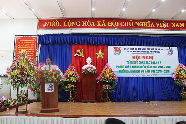 Ghi nhận những kết quả đạt được của tuổi trẻ Nhà trường trong năm học 2014-2015, thay mặt cho Đảng uỷ, Ban Giám hiệu Nhà trường, PGS.TS Dương Quốc Cường đã biểu dương những thành tích đó và ghi nhận sự đóng góp của toàn thể đội ngũ cán bộ Đoàn và Đoàn viên sinh viên Nhà trường vào thành tích chung. Đồng thời, PGS.TS Dương Quốc Cường cũng đã có các ý kiến chỉ đạo, giao nhiệm vụ trong năm học tới cho toàn Đoàn. PGS. TS Dương Quốc Cường phát biểu tại Hội nghị: “Năm học 2014-2015 được đánh giá là một năm với nhiều những sự kiện quan trọng trong công tác Đoàn và phong trào sinh viên Trường Đại học Ngoại ngữ. Đây là năm đầu tiên triển khai thực hiện Nghị quyết Đại hội đại biểu Đoàn TNCS HCM Trường Đại học Ngoại ngữ nhiệm kỳ 2014-2017. Nghị quyết Đại hội Đảng bộ Trường Đại học Ngoại ngữ nhiệm kỳ 2015-2020 có nhiều hoạt động quy mô và chiều sâu tổ chức. Các hoạt động đó thể hiện sự năng động, sáng tạo, tinh thần trách nhiệm của đội ngũ cán bộ Đoàn và thu hút đoàn viên, thanh niên tham gia. Rất nhiều bằng khen, giấy khen, cờ thi đua do Trung ương Đoàn, Thành Đoàn Đại học Đà Nẵng, Đoàn Đại học Đà Nẵng trao tặng trong năm học qua là một minh chứng rõ nét cho những thành công đó. Rất nhiều sinh viên đã được tôi luyện và trưởng thành từ Phong trào Đoàn, trở thành những công dân có ích. Cũng tại Hội nghị này tôi mong muốn Chi ủy các chi bộ, lãnh đạo các Khoa, Phòng dành nhiều quan tâm, ưu ái hơn nữa đối với phòng trào Đoàn. Tôi kêu gị các bạn đoàn viên, sinh viên tích cực, hăng hái hơn nữa trong các hoạt động Đoàn vì đây là môi trường để các bạn tôi luyện, phấn đấu và trưởng thành.”