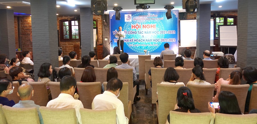 Phát biểu khai mạc Hội nghị, PGS.TS. Trần Hữu Phúc – Hiệu trưởng Nhà trường khẳng định năm học 2021-2022 là năm học với nhiều dấu ấn sâu sắc đối với Trường Đại học Ngoại ngữ – Đại học Đà Nẵng, mặc dù chịu ảnh hưởng nặng nề của dịch Covid-19 nhưng với nhiều giải pháp đồng bộ, Trường Đại học Ngoại Ngữ – Đại học Đà Nẵng đã đạt nhiều kết quả nổi bật trong năm học 2021-2022 và đặt ra nhiều mục tiêu trong năm học 2022-2023.