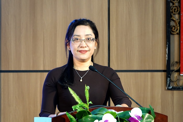 Đồng chí Đào Thị Thanh Phượng, Phó Bí thư Đảng ủy, Chủ tịch Hội đồng trường Trường Đại học Ngoại ngữ phát biểu