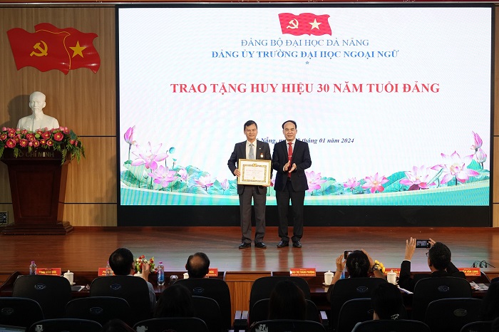 Tại Hội nghị, Đảng bộ Trường Đại học Ngoại ngữ đã tổ chức trao tặng Huy hiệu 30 năm tuổi Đảng cho đồng chí Nguyễn Đức Hùng, đảng viên Chi bộ Khoa tiếng Nga. Huy hiệu 30 năm tuổi Đảng là phần thưởng danh giá thể hiện sự ghi nhận, đánh giá cao của Đảng đối với các đồng chí có đóng góp tích cực trong công tác xây dựng Đảng qua các thời kỳ, xứng đáng trở thành những tấm gương sáng để lực lượng đảng viên trẻ học tập và noi theo. Đó không chỉ là niềm vinh dự của cá nhân mà còn là một vinh dự lớn đối với Đảng bộ Trường Đại học Ngoại ngữ.