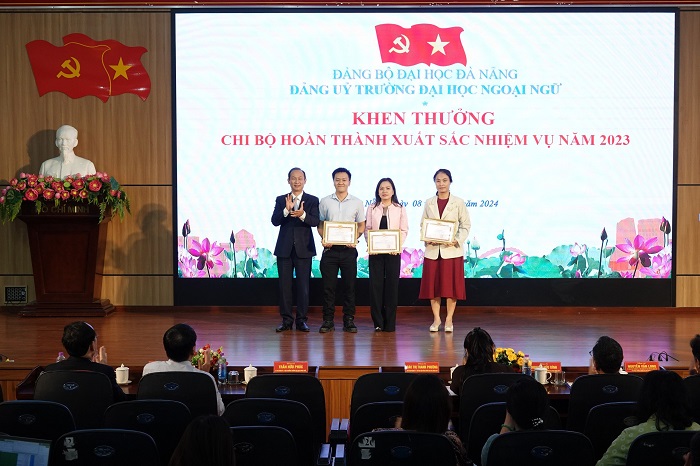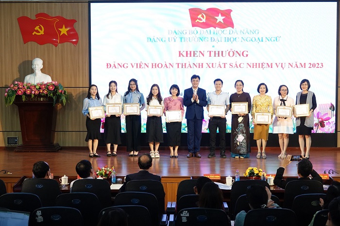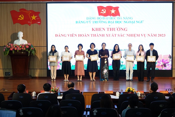 Nhằm ghi nhận các tập thể chi bộ và các đồng chí đảng viên có nhiều thành tích đóng góp vào sự phát triển của Đảng bộ Trường Đại học Ngoại ngữ trong năm 2023. Đảng ủy Nhà trường đã trao Giấy khen cho Chi bộ Khoa học & Hợp tác Quốc tế, Chi bộ Khoa Quốc tế học và Chi bộ Sinh viên là 03 Chi bộ hoàn thành xuất sắc nhiệm vụ năm 2023 và 21 cá nhân hoàn thành xuất sắc nhiệm vụ năm 2023.