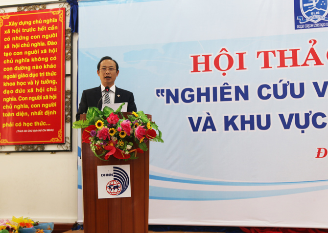 Phát biểu chào mừng và khai mạc Hội thảo, TS. Trần Hữu Phúc – Hiệu trưởng Nhà trường đã gửi lời cảm ơn đến sự quan tâm tham gia, ủng hộ nhiệt tình của các nhà khoa học trên cả nước. “Hội thảo lần này đã nhận được sự quan tâm sâu sắc và tham gia nhiệt tình của các nhà khoa học đến từ các cơ sở giáo dục ĐH, các viện nghiên cứu trong cả nước. Sau khi được Ban chuyên môn và Hội đồng phản biện xem xét nghiêm túc và công minh, 67 báo cáo toàn văn có hàm lượng khoa học cao đã được tuyển chọn đăng trong cuốn Tuyển tập các công trình của Hội thảo. Các báo cáo đã trình bày các nghiên cứu đa dạng trên nhiều lĩnh vực, như: Giảng dạy tiếng Việt cho người nước ngoài; Văn hóa Việt Nam và các nước trên thế giới; So sánh và đối chiếu các ngôn ngữ; Các xu thế trong nghiên cứu quốc tế học và khu vực học; Phương pháp giảng dạy ngoại ngữ và Ứng dụng CNTT trong giảng dạy ngoại ngữ, v.v… Tuyển tập công trình đã cung cấp một bức tranh khá toàn cảnh và chi tiết về thực trạng nghiên cứu và giảng dạy bản ngữ, ngoại ngữ; và các vấn đề quốc tế như vai trò các nước đối với quá trình hội nhập và hợp tác quốc tế. Chúng tôi cũng xin cáo lỗi đến một số tác giả vì khuôn khổ kỷ yếu có hạn không thể đăng tải toàn bộ các báo cáo được gửi đến Ban chuyên môn và Hội đồng phản biện của Hội thảo và mong các tác giả tiếp tục đầu tư, đóng góp các báo cáo khoa học chất lượng cho các lần hội thảo tiếp theo.” -TS. Trần Hữu Phúc cho hay.