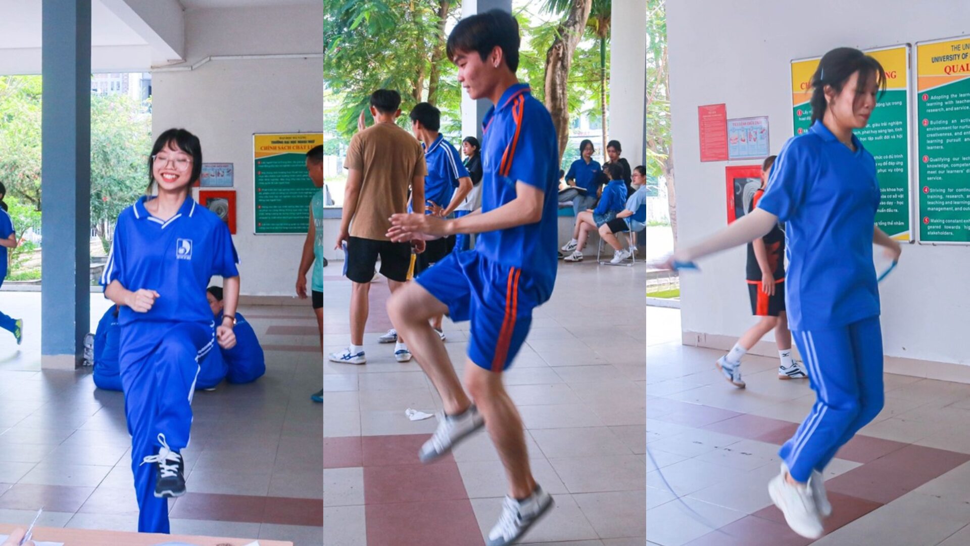 Hội thao Sinh viên khoẻ Trường Đại học Ngoại ngữ năm 2024 đã mang đến không khí sôi động, hào hứng và tràn ngập năng lượng tích cực. Các sinh viên đã cùng nhau tham gia vào các hoạt động thể thao đồng đội như bóng đá, chạy tiếp sức, kéo co và các nội dung cá nhân như gập bụng, nhảy dây, lắc vòng, chạy nâng cao đùi, hít đất, jumping jack.