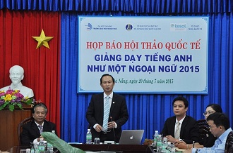 Lãnh đạo Đại học Ngoại ngữ, Đại học Đà Nẵng chủ trì họp báo, công bố sự kiện “Hội thảo quốc tế về giảng dạy tiếng Anh như một ngoại ngữ” sẽ diễn ra trong 2 ngày 28 và 29/7/2015. -Ảnh: T.N. |