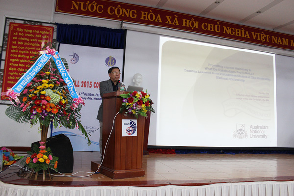 TS. Nguyễn Văn Long – Phó Hiệu trưởng Trường Đại học Ngoại ngữ – ĐHĐN đang trình bày báo cáo.