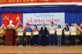 Đặc biệt, nhiều suất học bổng khuyến học-khuyến tài đã kịp thời được trao tận tay các em ngay đầu năm học mới: Đoàn Thanh niên Nhà trường ĐHNN-ĐHĐN trao tặng 12 suất học bổng cho 12 đoàn viên từ Quỹ học bổng “ Chắp cánh ước mơ” năm 2015 ; Chi Nhánh Mobifone Đà Nẵng II trao 1 suất học bổng và quà tặng tổng trị giá 3 triệu đồng cho tân sinh viên Ngô Thị Thu Minh lớp 15CNATM03 Thủ khoa toàn trường khóa TS 2015 và 1 suất học bổng và quà tặng tổng trị giá 3 triệu đồng cho sinh viên Lê Công Anh lớp 12CNQTH03 đã vượt qua hoàn cảnh khó khăn để đạt kết quả tốt trong học tập năm học 2014-2015;Trung tâm Viettel Q.Cẩm Lệ trao 5 suất học bổng mỗi suất trị giá 1 triệu đồng và 5 điện thoại cho 5 sinh viên vượt qua hoàn cảnh khó khăn để đạt kết quả tốt trong học tập năm học 2014-2015; Tổng Lãnh sự Thái Lan tại TP.HCM và CTCP Việt Namtrao 8 suất học bổng mỗi suất trị giá 250 USD cho 8 sinh viên ngành ngôn ngữ Thái Lan; CTCP Bảo hiểm Dầu khí Việt Nam PVI Đà Nẵng trao 5 suất học bổng mỗi suất trị giá 1 triệu đồng cho 5 SV vượt qua hoàn cảnh khó khăn để đạt kết quả tốt trong học tập năm học 2014-2015. CT Bảo Hiểm Bảo Minh Đà Nẵng trao 5 suất học bổng mỗi suất trị giá 1 triệu đồng cho 5 SV vượt qua hoàn cảnh khó khăn để đạt kết quả tốt trong học tập năm học 2014-2015.CT.TNHH Thiên Sư Việt Nam-Chi nhánh Đà Nẵng trao 2 suất học bổng mỗi suất trị giá 3,5 triệu đồng cho 2 sinh viên Khoa tiếng Trung.