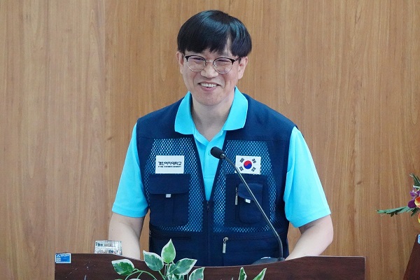 Giáo sư Jung Chang Hoon – Trưởng đoàn Sinh viên tình nguyện của Trường Đại học Nữ sinh Kyungin phát biểu