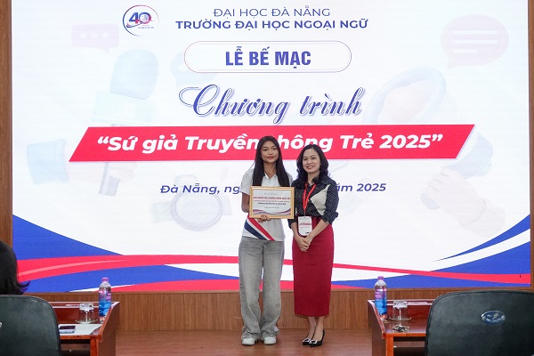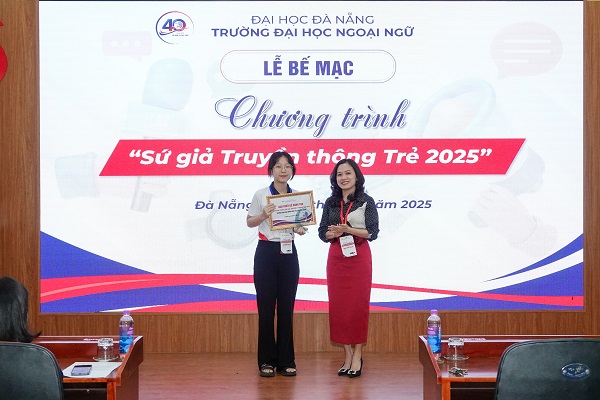 Chiều ngày 5/7/2025, lễ Bế mạc chương trình đã diễn ra tại Hội trường HC303, Trường Đại học Ngoại ngữ, Đại học Đà Nẵng. Buổi lễ đánh dấu chặng đường hơn hai tuần học hỏi và sáng tạo không ngừng của những “sứ giả truyền thông” thế hệ mới – những học sinh trung học đầy bản lĩnh, đam mê và khát khao cống hiến.