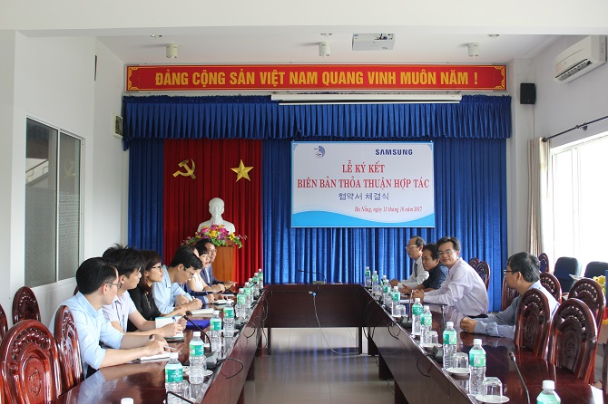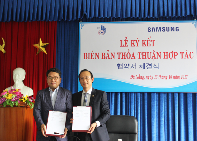 Cũng tại buổi làm việc, hai bên đã ký kết Biên bản ghi nhớ về chương trình học bổng và tuyển dụng sinh viên chuyên ngành tiếng Hàn. Theo đó, Công ty TNHH Samsung Electronics Việt Nam Thái Nguyên sẽ cấp một số suất học bổng cho sinh viên năm 4 chuyên ngành tiếng Hàn thuộc Khoa tiếng Nhật- Hàn-Thái của Trường Đại học Ngoại ngữ – Đại học Đà Nẵng. Hai bên cam kết sẽ phối hợp tổ chức các chương trình hội thảo, hội chợ việc làm và các hoạt động truyền thông khác để phổ biến thông tin tuyển dụng của Samsung đến sinh viên. Cũng dựa trên thỏa thuận hợp tác này, sinh viên chuyên ngành Ngôn ngữ Hàn có cơ hội tham gia chương trình thực tập tại các chi nhánh của Samsung. Đây hứa hẹn sẽ là cơ hội rất tốt để sinh viên được thử sức trong môi trường làm việc năng động và chuyên nghiệp của Samsung.