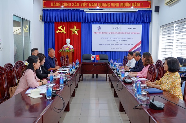 Phát biểu tại buổi làm việc, PGS.TS. Trần Hữu Phúc- Hiệu trưởng Nhà trường bày tỏ vui mừng khi được chào đón đoàn Công ty TNHH Kinokuniya và Công ty Yamanochaya, Nhật Bản đến thăm và ký kết. Hiệu trưởng Trần Hữu Phúc đã giới thiệu về Trường Đại học Ngoại ngữ, ĐHĐN với lịch sử gần 30 năm hình thành và phát triển, là một trong ba trường đào tạo chuyên ngữ với quy mô đào tạo hơn 7.000 sinh viên.