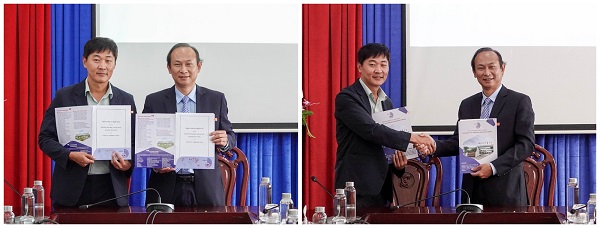 Buổi ký kết thỏa thuận hợp tác giữa Trường Đại học Ngoại ngữ, ĐHĐN và Công ty TNHH SGI VINA có sự tham dự của ông Kang Boo Sung – Tổng Lãnh sự Hàn Quốc tại Đà Nẵng (thứ nhất từ phải sang)